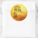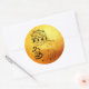 Jolie et adorable peinture à l'encre d'un chat + Large 2023 avec des souhaits en plusieurs langues : vietnamien, chinois, anglais, russe français, allemand, espagnol, finlandais, suédois... Conception sur autocollant rond standard avec texture dorée comme arrière - plan. Carte de voeux correspondant, carte postale de vacances. Parfait pour souhaiter bonne chance et richesse pour le Nouvel An Vietnamien du Chat 2023.