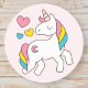 Sticker Rond Anniversaire. Cute Unicorne avec de mignons Coeurs