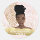 Sticker Rond Anniversaire, Femme noire, Feuille Tropicale Or, R