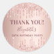 Un autocollant pour une fête d'anniversaire girly et glamour de 50e (ou tout âge). Un arrière - plan rose de dégradé d'or avec des gouttes de fausse parties scintillant, la peinture goutte à goutte. Le texte : Merci. Personnalisez et ajoutez le nom et l'âge 50. Le nom est écrit avec un script de style moderne écrit à la main.