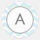 Sticker Rond Aqua Blue Zig Zag Chevron Motif Monogramme