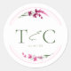 Cette collection de mariage élégante utilise une palette de couleurs saisissante, y compris fuchsia fedora, vert citron et coton rose bonbon, pour créer des articles de papeterie assortis et des fournitures de fête pour votre journée spéciale. Les flores d'aquarelle et les touches de peinture scintillantes attirent les arrière - plans. Écriture manuscrite jumelée à une police serif classique apporte une touche moderne. L'autocollant de faveur de mariage montré ici avec une bordure florale, fournit un modèle pour ajouter facilement vos propres initiales et votre date de mariage. Recherchez ID954 pour voir d'autres pièces et choix de couleurs pour cet ensemble.