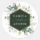Cet autocollant mariage présente des eucalyptus à aquarelle peinte, des feuilles verts, des fleurs avec un cadre hexagone géométrique en faux or. Pour une personnalisation plus avancée de cette conception, cliquez sur le lien "Customiser plus loin". Des articles correspondants sont également disponibles.