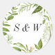 Sticker Rond Aquarelle vert sauvage Feuillage Mariage Monogramm