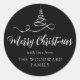 Sticker Rond Arbre à ruban noir Joyeux Noël Script