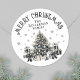 Ajoutez une touche festive et élégante à vos faveurs de vacances ou enveloppes scellées avec cet autocollant rond de Noël avec un arbre de Noël aquarelle sophistiqué. "Joyeux Noël" est courbé le long du bord supérieur dans une police de script gracieuse, créant un cadre joyeux pour votre message. En dessous de cette courbe, vous trouverez de l'espace pour votre nom de famille, un court message de bienvenue ou une note personnalisée dans une police serif classique. Au bas de l'autocollant se trouve l'illustration détaillée, un arbre de Noël noir et blanc à la teinte verte douce, entouré de cadeaux et de délicats flocons de neige tombants. Le style aquarelle raffiné et le design minimaliste apportent un look moderne et intemporel à toute installation de vacances. Parfait pour sceller les sacs de faveur de la partie, décorer les étiquettes cadeaux, ou ajouter un détail spécial à vos cartes de fin de année. Tout le texte, les polices et les couleurs peuvent être customisés pour correspondre à votre style.