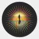 Arc-en-ciel Soleil Retro Vintage Designe Runder Autocollants Ces autocollants sont parfaitement adaptés à être offerts : - un petit cadeau de Noël secret - placez-le sur votre ordinateur, votre réfrigérateur, votre skateboard pour décorer vos carnets, votre journaliste Bullet, votre armoire à eau flacon