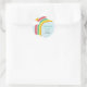 Un autocollant rond pour la fête d'anniversaire d'un enfant pour la fête à thème Rainbow.