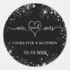 Un élégant arrière - plan noir, décoré de faux éclats d'argent. M. et Mme avec un coeur. Personnalisez et ajoutez vos noms et votre date de mariage. Texte blanc.