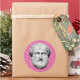 Aristotle sticker Greek philosopher sculpture face on a pink greek key pattern for anyone who loves Greece and Greek Philosophy, Ancient Greece and Classics