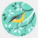 Autocollants décoratifs d'oiseaux avec de l'art Nuthatch au coeur rouge stylisé sur une couleur turquoise arrière - plan et branches tourbillonnantes avec feuille assorti
