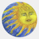 Sticker Rond Art, Soleil Jaune Lumineux dans Ciel Bleu
