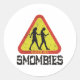 Un design cool et drôle avec une enseigne avec deux personnes qui se baladent en regardant leurs smartphones comme des zombies et la citation "Attention aux mombies".