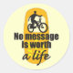 Pouvez-vous voir ce gamin à vélo, en train de foncer sur la route devant vous ? Il ne vous regarde pas, il est pressé d’aller quelque part. Mais que regardez-vous - la route et ce qui se passe autour de vous, ou votre téléphone portable ? Il se peut que ce soit une question de temps jusqu'à ce qu'un enfant, un chat ou un chien s'épuise devant vous, ou que vous sortiez de la route. Vous pourriez vous écraser, perdre votre vie ou tuer quelqu'un d'autre. S'il vous plaît, ne donnez pas de texte et ne conduisez pas. Diffusez le message avec ces autocollants élégants. Le texte dit : "Aucun message ne vaut une vie". Dans l'arrière - plan est un téléphone portable jaune, et au-dessus est un enfant sur un vélo. Vous pouvez changer la couleur de l’arrière - plan si vous le souhaitez. Ce design est disponible en d'autres couleurs, ou avec un chien ou un chat au lieu du cycliste. Vous voulez ceci ou une conception similaire sur un autre article? Parcourez le texte et le lecteur de mon magasin.