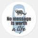 N’envoyez pas de textos et ne conduisez pas - un animal de compagnie peut se trouver sur la route. Pouvez-vous voir ce petit chou doux, là au bord de la route ? Elle ne vous regarde pas, il y a quelque chose de l’autre côté de la rue qu’elle veut vérifier. Mais que regardez-vous - la route et ce qui se passe autour de vous, ou votre téléphone portable ? Il se peut que ce soit une question de temps jusqu'à ce qu'un chat, un chien ou un enfant s'épuise devant vous, ou que vous sortiez de la route. Vous pourriez frapper un poteau, perdre votre vie, ou tuer quelqu'un d'autre. S'il vous plaît, ne donnez pas de texte et ne conduisez pas. No Messaging Kitty vous remercie. Diffusez le message avec ces autocollants élégants. Le texte dit : "Aucun message ne vaut une vie". Dans l'arrière - plan est un téléphone portable bleu, et au-dessus est un petit chat doux. Vous pouvez changer la couleur de l’arrière - plan si vous le souhaitez. Ce design est disponible en bleu ou rose, ou avec un chien au lieu d'un chat. Vous voulez ceci ou une conception similaire sur un autre article? Parcourez le texte et le lecteur de mon magasin.