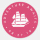 Sticker Rond Aventure Attend | Fuchsia et White Ship