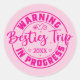 Sticker Rond Avertissement Besties Voyage en cours Magenta sur