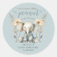 Sticker Rond Baby shower bleu petit arachide éléphant