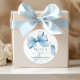 Charming Coquette style autocollant pour un baby shower garçon. Il présente des arcs bleus délicats et des détails élégants, parfaits pour sceller des enveloppes, décorer des faveurs ou ajouter une touche douce à la décoration de la fête.