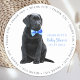 Invitation vos amis et votre famille pour célébrer l'arrivée de votre nouveau bébé garçon avec cet adorable noir labo autocollants de baby shower de chiot, invitations, accessoires de fête et cadeaux. Un petit garçon chiot, récupérateur de labrador noir, dans une cravate d'arc bleu. Ce design simple et minimaliste est parfait pour tout baby shower à thème chiot. DROIT D'AUTEUR © 2020 Judy Burrows, Black Dog Art - Tous droits réservés. Autocollant rond classique Baby shower garçon bleu chien de Labrador