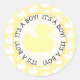 Jaune, blanc. C'est un garçon. des autocollants en baby shower de canard en caoutchouc.