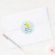 Réchauffez vos âmes d'invités avec notre chéri petit Baby shower Duckie Sticker! Une illustration de canard en caoutchouc doux flotte au-dessus d'un arrière - plan en plaid doux fini en bleu.