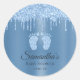 Sticker Rond Baby shower Garçon bleu Parties scintillant pieds