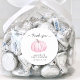Un autocollant de remerciement mignon, gai et lumineux pour bébé fille douche avec une aquarelle rose pastel d'un citrouille et "merci" écrit dans un script élégant. Vous pouvez facilement personnaliser le nom de la mère et la date de la douche dans la coordination de la typographie gris doux.
