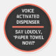 "Distributeur activé par la voix - Dites à haute voix 'Serviette en papier maintenant!'" Autocollant