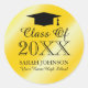 Sticker Rond Baguette de graduation 20XX en or brillant et scea