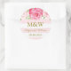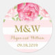 Sticker Rond Balise Fleur rose rayé Monogramme de mariage Faveu
