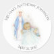 Sticker Rond Baptême Bébé Garçon Fleurs Bleues Mary