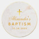 Sticker Rond Baptême Élégant Script Faux Gold Foil Cross Marbre