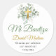 Sticker Rond Baptême en espagnol Bautismo Feuille vert mignon