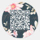 Sticker Rond Beau Blush Floral QR Code Bleu foncé