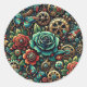 Sticker Rond Beau Steampunk Gears à thème et Roses