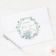 Mignonne autocollante pour votre bébé garçon douche merci cartes et faveurs de fête avec "Un petit Merci doux" dans un mélange de typographie simple et un script élégant avec un coeur swash et une aquarelle d'un bébé éléphant bleu sur une couronne de vert sauge eucalyptus verdure.