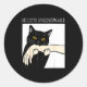 Sticker Rond Become Ungovernable - Black Cat Biting Hand Funny