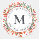 Notre Sticker Monogram Classic Round Berries & Green Feuille moderne et élégant présente une aquarelle illustrant les feuilles d'automne colorées dans les tons jaune, orange, rousse, sauge et vert turquoise accentué par les baies de rowan rouge mûr. Tout le texte de l'autocollant peut être mis à jour pour créer un accessoire unique d'emballage d'envoi ou de cadeau.