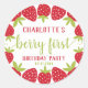 Berry First Strawberry 1er Anniversaire de fête Sticker Classic Rond Personnalisé. Mignonne auto-collant pour la fête du 1er anniversaire de la petite fille avec illustration de fraises.