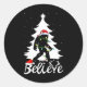 Sticker Rond Bigfoot portant Noël Arbre Sasquatch Croyant