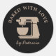 Modern and trendy black and beige baked with love stickers. kraft beige mixer image adds a rustic look to the holiday baking gift packs.