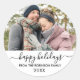 Sticker Rond Black White Script Couple Photo Joyeuses Fêtes
