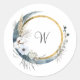 Sticker Rond Bleu Blanc or Floral Monogramme Mariage Boho