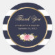Elégant mariage floral rayé bleu marine et blanc, merci les autocollants ronds avec des fleurs rose pastel et doré. Personnalisez facilement en ligne.