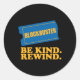 Un design d'inspiration rétro qui présente l'expression Blockbuster Be Kind Rewind, rendant hommage à l'époque emblématique de la location de vidéos.