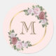 Sticker Rond Blush rose gold floral monogramme initiale