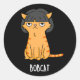 Sticker Rond Bobcat Funny Chat Bob Hair Pun Dark BG