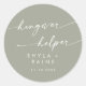 Ce boho chic sauge verdoyant aide à favoriser classique collant rond est parfait pour un mariage minimaliste. La tonalité neutre en terre verte design bohème moderne se caractérise par une calligraphie rustique simple au style unique mais classique. Personnalisez vos autocollants de faveur avec vos noms et votre date de mariage.