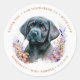 Invitation vos amis et votre famille pour célébrer l'arrivée de votre nouveau bébé avec cet adorable labrador récupérateur puppy des invitations de douche bébé, accessoires de fête et cadeaux. Cette invitation baby shower présente un chiot de laboratoire noir peint à la main, parfait pour les amoureux de les chiens ! Le design est moderne et tendance, avec un schéma de couleurs boho en terre cuite orange pour célébrer l'arrivée prochaine de votre bébé. DROIT D'AUTEUR © 2023 Judy Burrows, Black Dog Art - Tous droits réservés. Sticker Boho Chien en Terracotta Baby shower Merci Classic rond